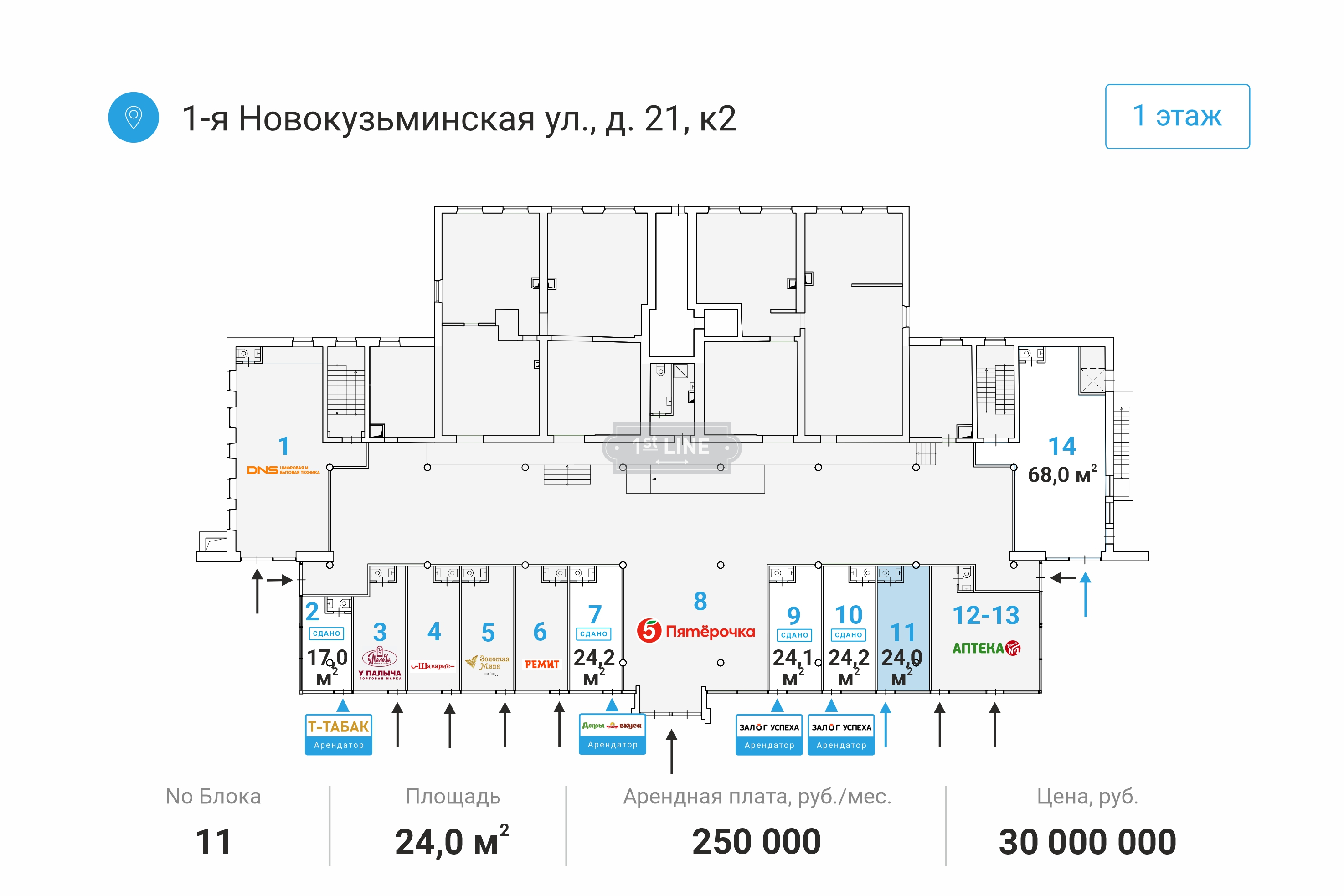 Объект расположен на первом этаже, в непосредственной близости от станции метро «Рязанский проспект» — менее 1 минуты пешком.
